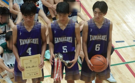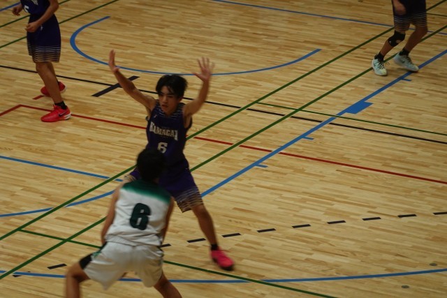 葛南新人大会バスケットボールの部(男子)の決勝戦に進んだ本校チームです。県大会出場をかけ、我孫子中学校と対戦しました。スタートより、積極的なプレーで得点を重ねていきました。「堅守速攻」の応援旗が示すように、ディフェンスも強い気持ちが感じられました。最後まで走り抜き、優勝と県大会出場を手にしました。11月上旬に行われる県大会に向け、引き続き応援お願いします。