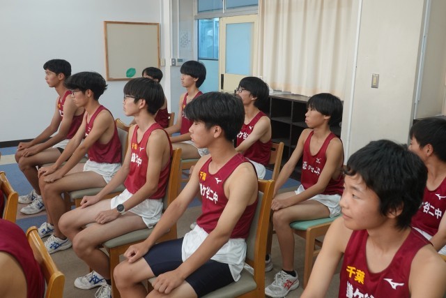 今日は、本校の東葛駅伝に出場するメンバーのお披露目となる、東葛駅伝壮行会を実施しました。体育館の空調工事のためリモートでしたが、選手のやる気、他の生徒の応援する気持ちが相互に交差するのが感じられるものとなりました。明日は控えを含めた全員で目標に向かって頑張ってくれると思います。応援をお願いします。東葛駅伝のホームページから、当日は動画配信も見る事ができます。