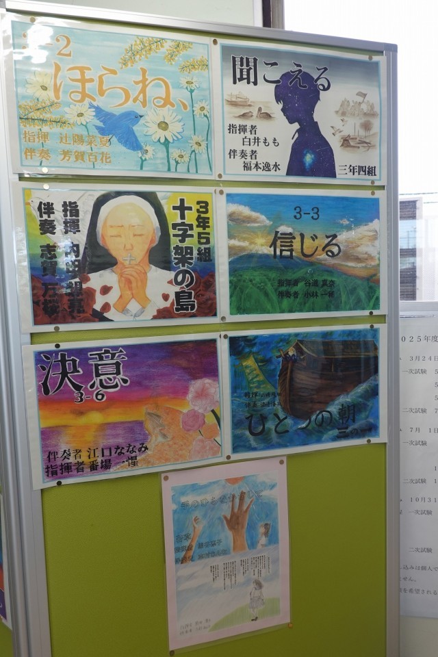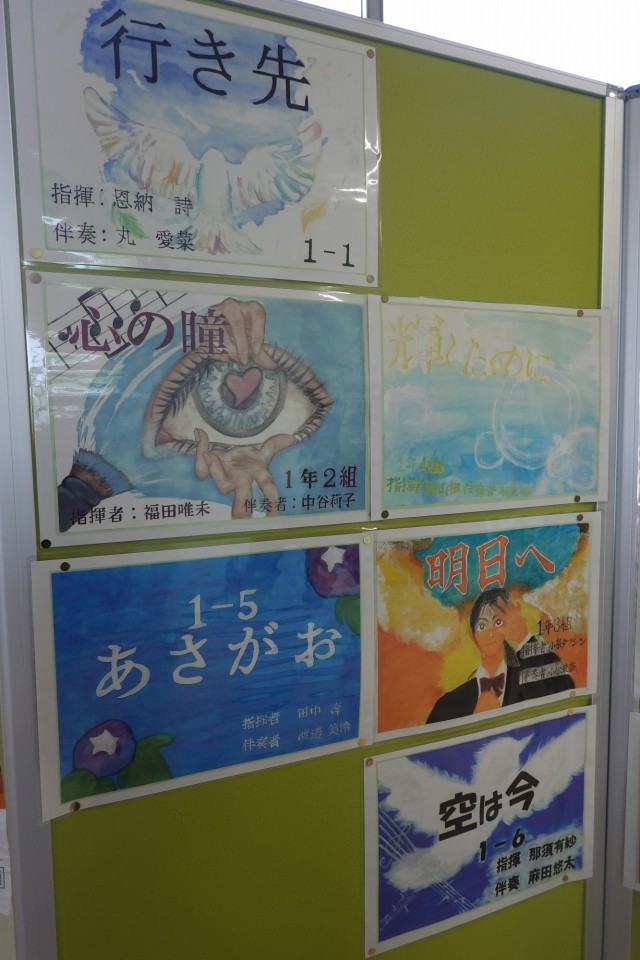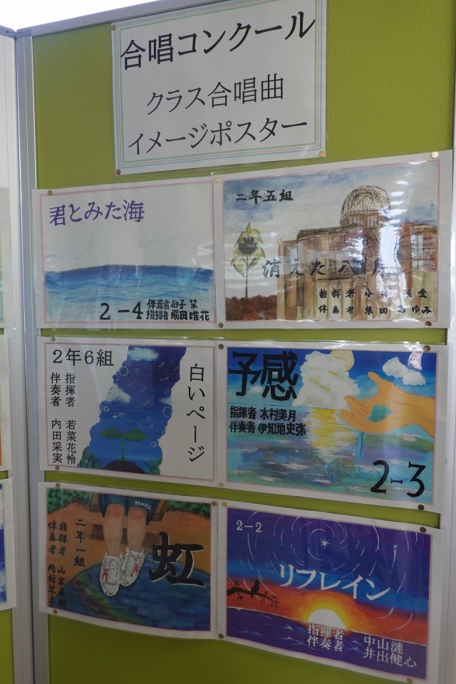 さて、自分たちのクラス合唱曲をイメージしたポスターが掲示されているので紹介します。どれも力作揃いですね。
