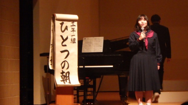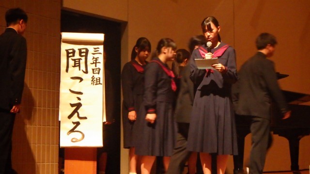 最後に3年生の発表です。学年合唱は「大地讃頌」を歌いました。さすがの歌声に圧倒させられるとともに、これまで3年生の皆さんが積み上げてきたものの大きさを感じる、そんな合唱でした。