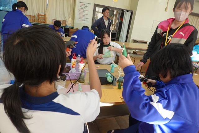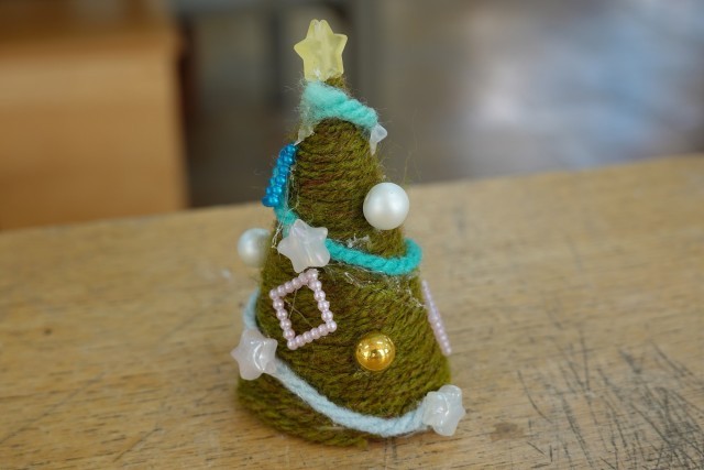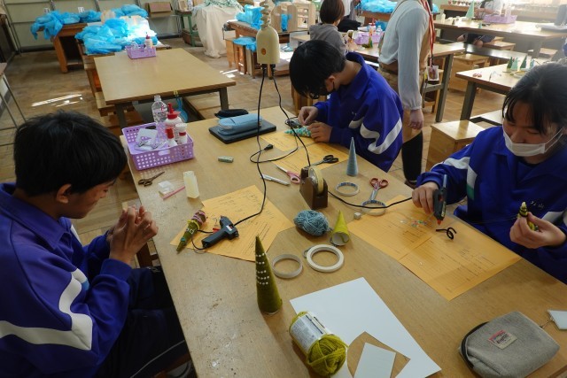若草学級の生徒が技術の時間に、クリスマスツリーを作成していました。色とりどりの毛糸や装飾品をうまくアレンジして、自分の発想を表現していました。制作工程や使用する材料も限られているなか、全く異なったツリーができるものだなと感心してみていました。何よりも集中して作業に取り組めてること、またお互いの作品の良さを認め合っているのがとても良い雰囲気でした。