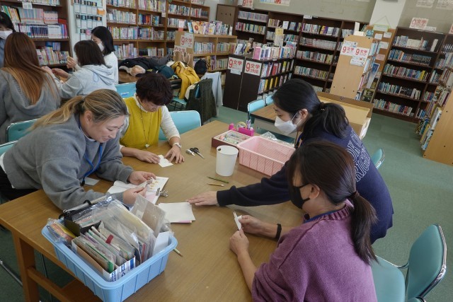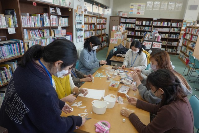 月に1度くらいの頻度で学校にお越しいただいている図書ボランティア活動の皆さんです。今日は図書室装飾、3年生に配付する「お守り」の作成に取り組んでいただきました。図書館司書さんがいつも感謝しているくらい、楽しそうに作業していました。本当にありがとうございます。