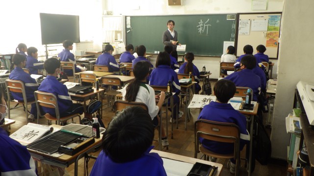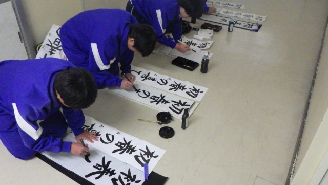 書き初めの季節になってきました。国語の授業ではそれぞれの学年の課題に集中して取り組んでいました。