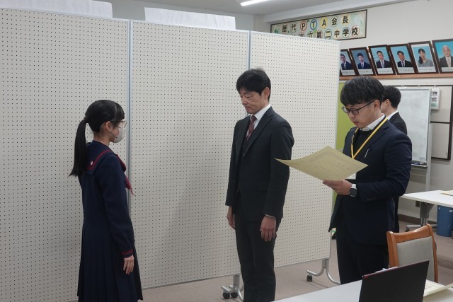 2学期の終業式前に表彰集会を行いました。部活動の発表は生徒本人に伝えてもらい、部活動以外のものはこの場で校長・教頭より表彰しました。運動面・文化面ともに頑張っているところが二中の良さだと思います。※画像は表彰の一部です。すべてではなくてすみません。