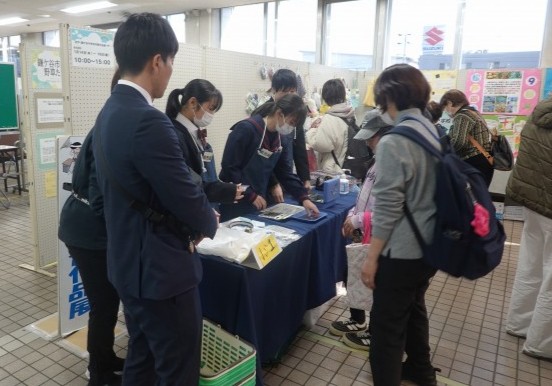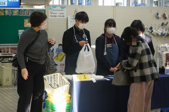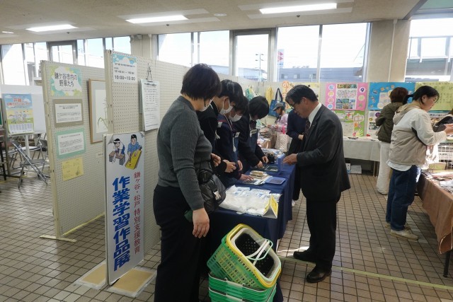 正式には「松戸・鎌ケ谷特別支援教育中学校作業学習作品展」と言います。中学校の特別支援教室で学ぶ生徒が、作業学習で制作した作品を販売します。交代で販売員となり、チラシの配布や陳列の手伝い、接客をしたり、レジ係を担当したりします。今日の販売会もすべてが学びとなります。商品を買っていただいたときに笑顔で「ありがとうございました。」と気持ちのよい挨拶をしていました。購入された方々も笑顔を見せてくれました。フリーの時間もあり、ほしい商品を購入する楽しみもありました。販売会は大盛況でした。