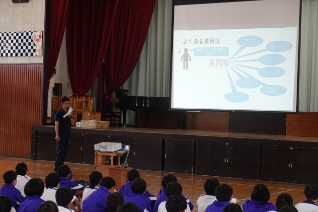 今週も学年内日課で進めています。1年生は発育測定や学年集会等を行っていました。発育測定のうち、視力検査は各学年で行っています。学年集会では、「SNSの正しい使い方」の指導が行われ、加害者にも被害者にもならないためにどうしたら良いか生徒に考えさせていました。本校では携帯電話の持ち込みは認めていませんので、ほとんどのSNSのトラブルは学校外での使用となります。学校も正しい使い方を定期的に考えさせたり、指導したりしていきますが、ご家庭での指導が一番大切になります。ぜひ、15日(水)などの保護者会で話題にして、大人が協力して考えてみるのも良いことだと思います。よろしくお願いします。
