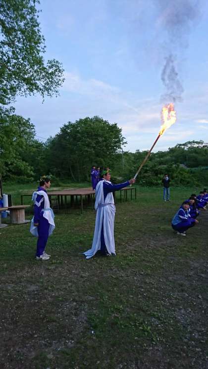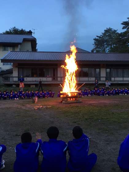 キャンプファイヤー実行委員のがんばりで、みんなの思い出に残るキャンプファイヤーになりました。やりきった実行委員の目には涙が光っていました。