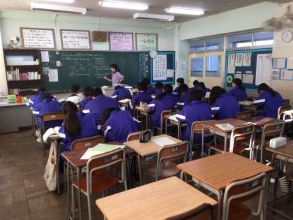 1年生の数学は、クラスを2つに分けた少人数の授業です。みんな必死にノートをとっています。