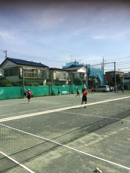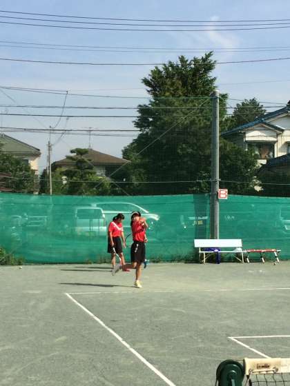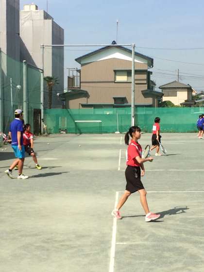 女子テニス部は松戸旭町中さんに来ていただき練習試合を行なっています。ファイト!