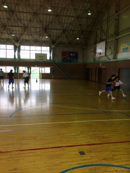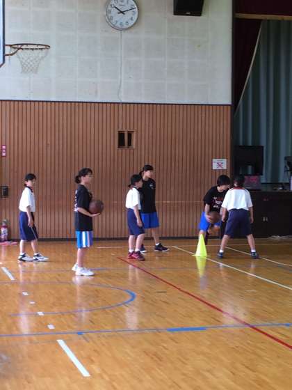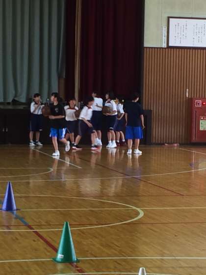 女子バスケ部も日曜日練習に1年生が参加し、2、3年生と組んでがんばっています。