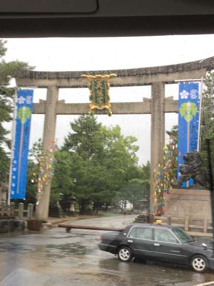 北野天満宮に到着しました。雨が少し弱くなってきました。
