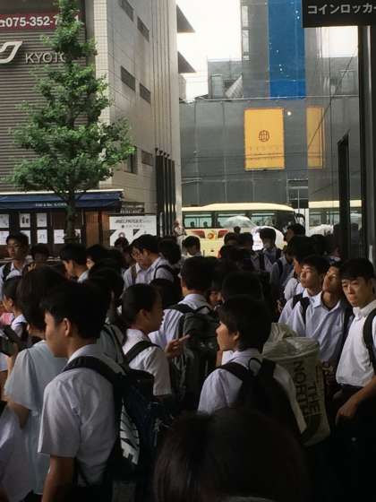 京都駅ビルの班別行動が始まっています。参加生徒全員、班別行動を楽しんでいます。お昼ごはん、おみやげタイムです。