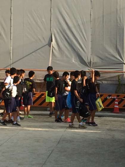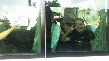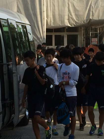 早朝、陸上部が葛南大会へ出発しました。熱い夏!気合い入っています!陸上部ファイト!
