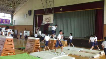 3年生の体育の様子です。男子は跳び箱。女子はマットにみんな一生懸命取り組んでいました。できなかった技ができるようになるとうれしいですよね!