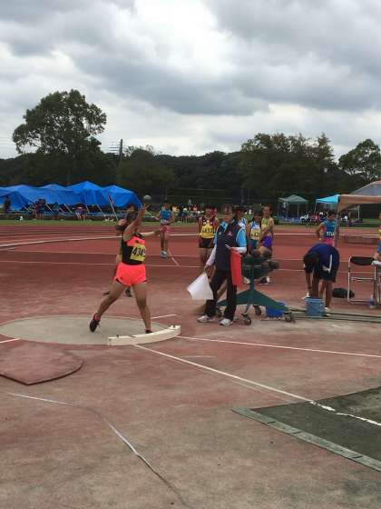 本日、葛南新人陸上大会が行われています。写真は、女子砲丸投げです。