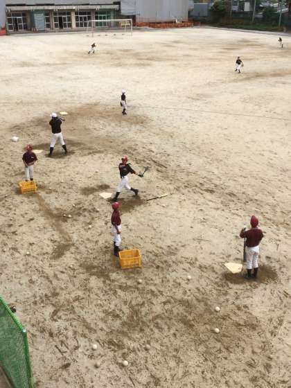 野球部は、ティーやマシーンで、打力アップを目指します!