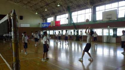 3年生男子体育はバレーボールです。ネットを立てパスの技術も高く、本格的な試合になりそうです。
