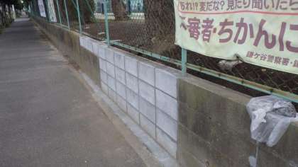 木の根っこの力で少し変形していたブロック塀の修理を行いました。