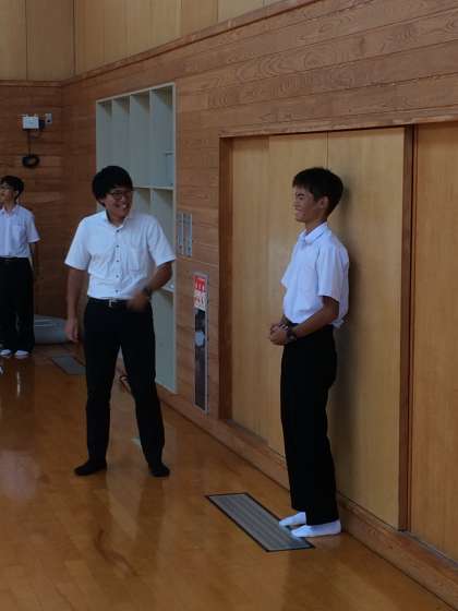 朝練習のあと、会場に向け出発しました。がんばれ!