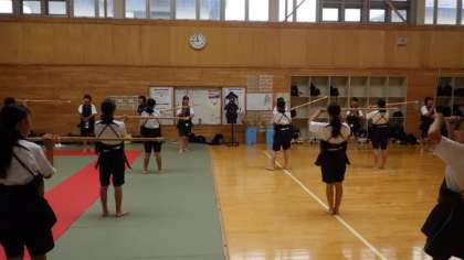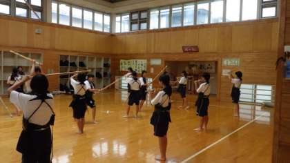 2年生女子の体育は剣道です。声を出して面打ちに取り組んでいます。