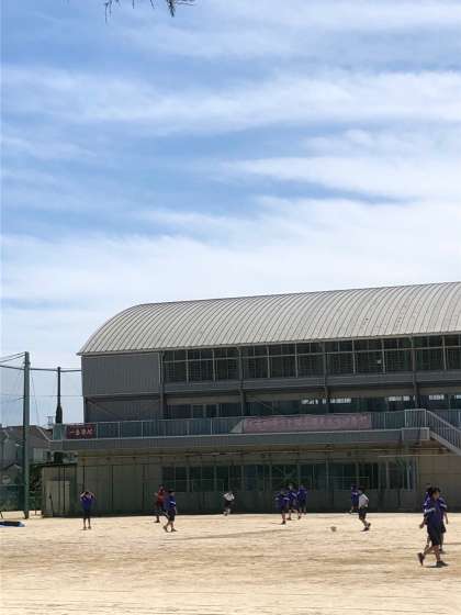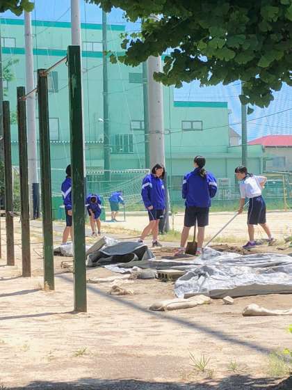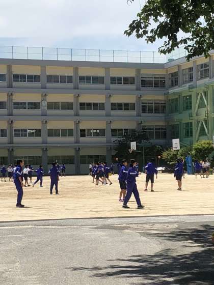 昨日は雨がたくさん降りましたが、今日はよく晴れました。昼休みに遊ぶ生徒も気持ち良さそう。5時間目の体育授業準備をする1年生もいました。