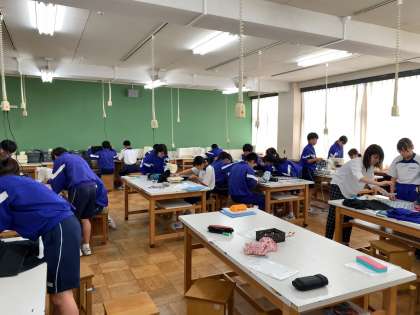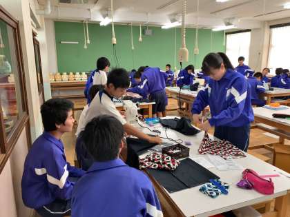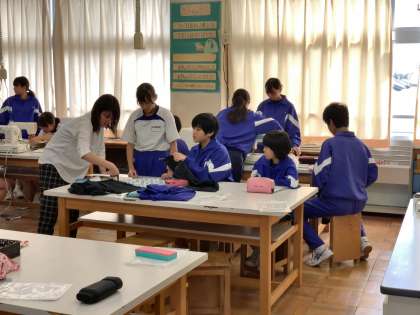 3年生家庭科の授業は「あずま袋」の作成です。楽しそうに作業をしていました。