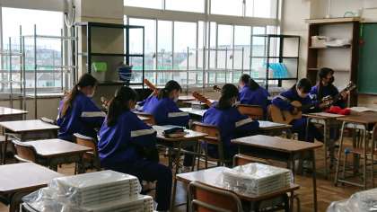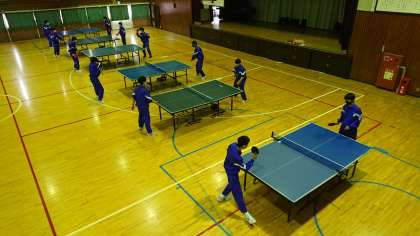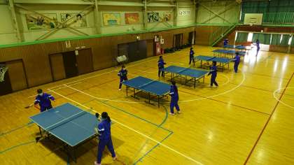 今日も朝から体育館では卓球部が、校舎内では、いくつかの教室に分かれギター部が練習に取り組んでいました。