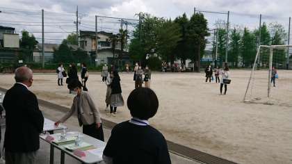 受付の様子です。新型コロナウィルス感染防止の観点で生徒昇降口で行いました。