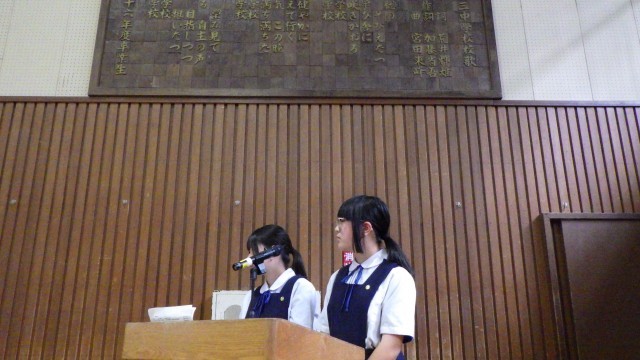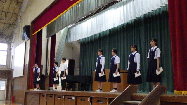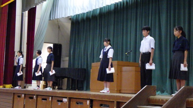 生徒会役員は、この引継ぎ式を境にして交代します。新旧生徒会役員にそれぞれ「感謝状」「任命状」が校長先生から手渡されました。旧役員は「1年間」の任期を立派に努めてくれました。お疲れ様でした!そして新役員も全校生徒の信任を経て選ばれた役員だけに、立派な覚悟と責任感をもって決意を述べていました。活躍を楽しみにしています。