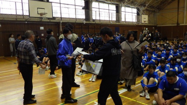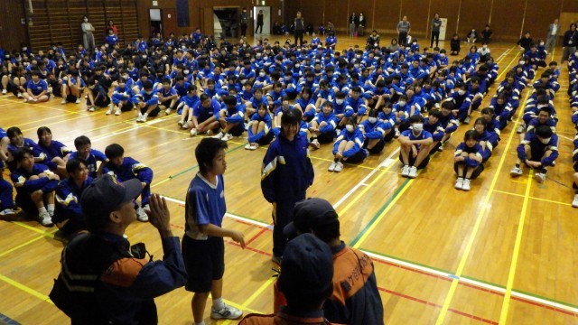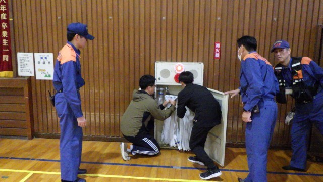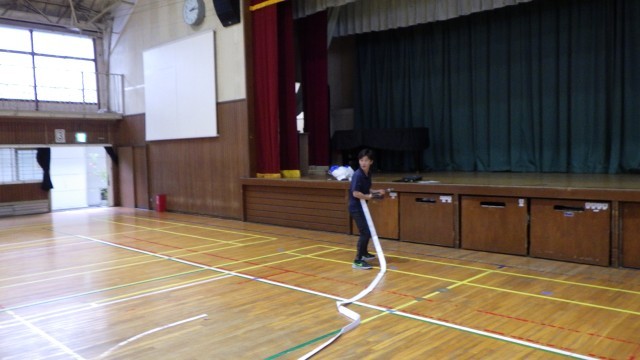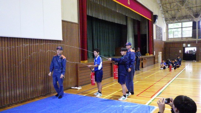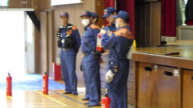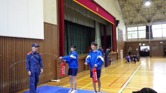 本日は今年度2回目の「避難訓練」を実施しました。今回の設定は地震発生後に「火災」が発生したケースを想定して、避難経路の変更、2次避難及び点呼の訓練を行いました。また、実際の火災発生時に、生徒が第1発見者になったことを想定して、「消火器」の使用訓練も行いました。「ピンを抜き、ノズルをポンと出し、レバーをパンとにぎる」と説明を受けた生徒達は、「火事だ~。火事だ~」とSOSの声を出してから、実際に消火器を使用して初期消火の訓練を行いました。実際の火災発生時には、火の勢いが1m以上に広がっている際は、消火栓による初期消火に切り替えますので、その際は教職員が消火栓を使用します。職員も消火栓の使用訓練を行いました。今後も実効的で組織的な訓練を実施します。