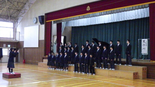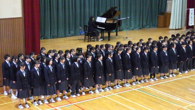 学級閉鎖のために合唱祭に参加できなかったクラスがあるために、1学年合唱発表会を実施しました。先週、校外学習を無事に終えて、中学生として一つステップアップした1年生ですが、今後の成長がとても楽しみですね。