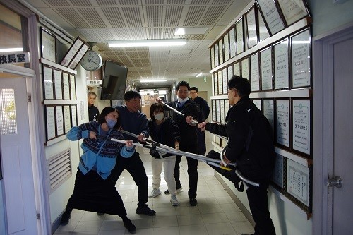 本日の朝も、厳しい寒さとなりました。第三中の周辺の地形は、周囲よりも低いすりばち状の地形の底部分にあたるため、冷気がたまりやすく朝の気温は「ー6度」まで下がりました。さて、今年3回目の避難訓練は不審者侵入に備えた避難訓練です。校内に不法侵入した不審者を発見した際に、職員がどのように声をかけ、どのように対応し、子ども達の身の安全を確保するのかを訓練するためのものです。また、生徒達は不審者侵入の緊急放送が入った際には、教室に「バリケード」を作る訓練を行いました。不審者への声のかけ方、校内無線の使い方、さすまたの使い方等について鎌ケ谷警察書の署員の方から御指導を頂き、職員の研修も行いました。いかなる状況が発生しても、落ち着いて対応できるように、今後も職員研修の充実を図っていきたいと思います。
