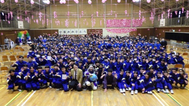 さて、本日の午後はPTA本部役員の皆さんが主催するPTA行事を行いました。PTAは通称「父母と先生の会」と呼ばれ、80年近く日本の各地域で、「子ども達の健やかな成長を支援する」ことを目的に活動してきました。第三中のPTAも50年以上の歴史があり、開校時には校庭に田んぼが残り、グラウンドも自由に使えない状況だった第三中学校を、父母と先生達が力を合わせて整備してきた歴史があります。当時のメンバーは、第三中学校には誰もいませんが、脈々と受け継がれてきた「見えない伝統」というものは確かに存在しています。今のPTAの皆さんもしっかりと「伝統」を受け継いで、「子ども達のために」1年間活動してくれました。そんなPTA役員の皆さんが、1年間温めてきた企画が「お笑いライブショー」です。PTA役員の皆さんの熱意が、芸人さんのゴー☆ジャスさんとマンマーレさんを遠い宇宙や、東京から招いてくれました。ライブは終始、会場が笑いと笑顔で包まれ、「幸福感」あふれる体育館となりました。ゴー☆ジャスさん、マンマーレさん、遠いところから子ども達のために「笑い」を運んできて下さいましてありがとうございました。また、PTA役員の皆さん、1年間お疲れ様でした!