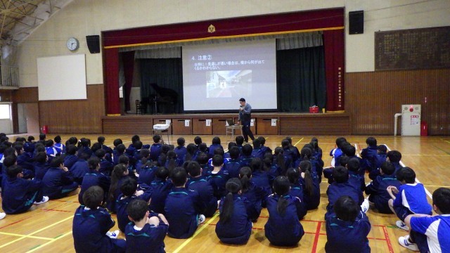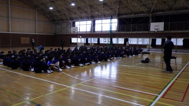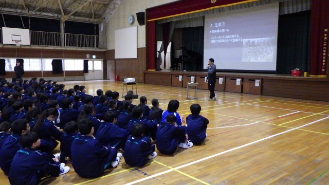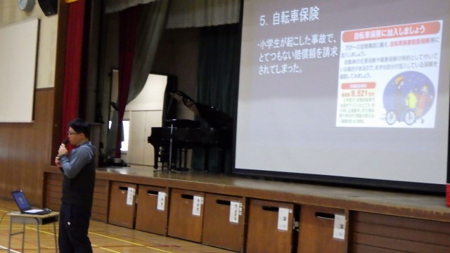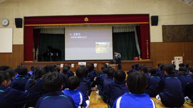 本日1年生では6校時に、自転車集会が行われました。自転車の乗り方はもちろんのこと、危険箇所や自転車保険について、安全主任の先生からお話しがありました。