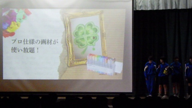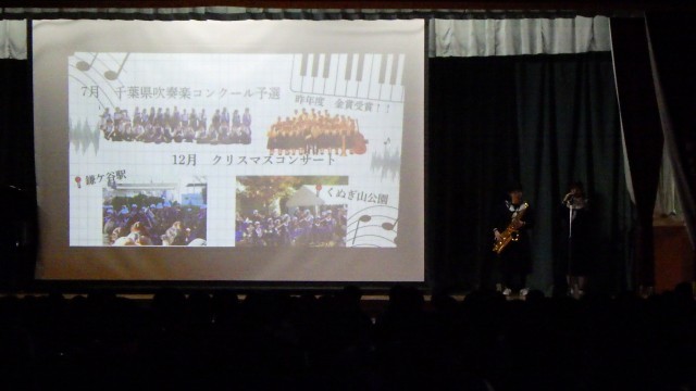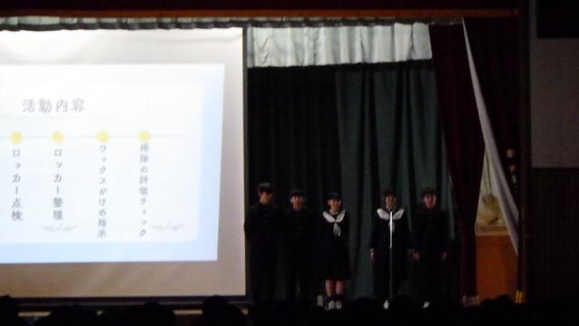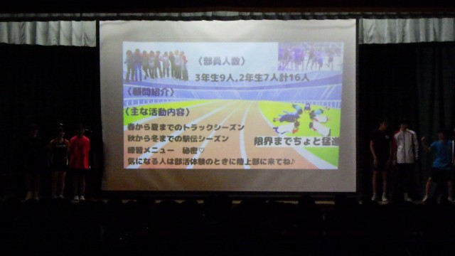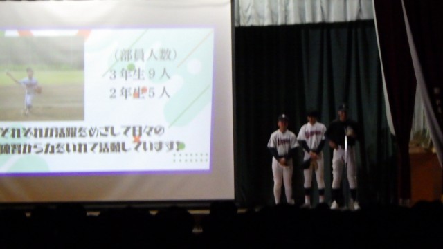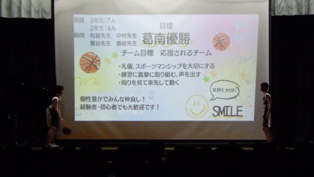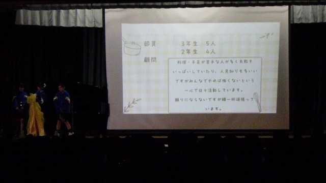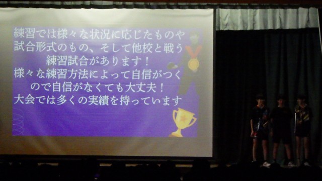 委員会の説明ののち部活動紹介が行われました。どの発表もよく工夫されており、三中のことがよくわかるものでした。