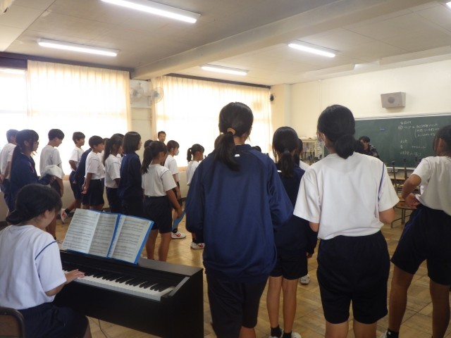 合唱祭に向けて、本日より帰りの会を延長して歌声活動に取り組んでいます。1年生の練習風景です。元気よく歌い、廊下に歌声が響いていました。