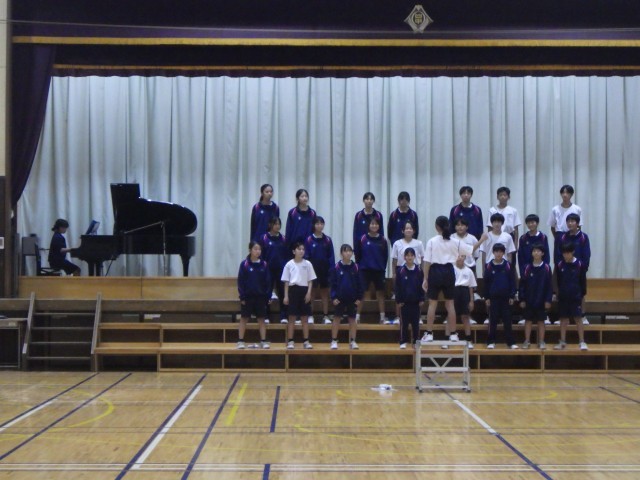 歌声活動の様子(10月10日) 公開日 2025/10/10 更新日 2025/10/10 お知らせ 1年生の歌声練習風景です。毎日練習をしているので、自信を持って歌っている様子が伝わってきました。体育館にも声が響いていましたので、本番も堂々と歌ってほしいです。 +5 いいね(0)