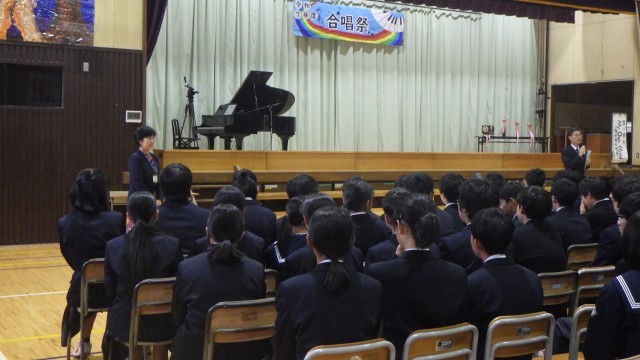 令和7年度合唱祭1 公開日 2025/10/25 更新日 2025/10/25 お知らせ 10月25日、本校体育館を会場として令和7年度合唱祭が行われました。はじめに校長先生から講師の先生の紹介がありました。続いて1年生の学年合唱の発表がありました。曲は「My Own Road」です。1年生らしい元気で明るい歌声が体育館中に響き渡りました。その後は、クラスごとの発表がありました。1年生にとっては初めての合唱祭でしたが、どのクラスも精一杯練習の成果を発揮しようとする気持ちが伝わってきました。 +7 いいね(0)