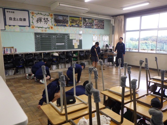 掃除の様子 公開日 2025/10/28 更新日 2025/10/28 お知らせ 2年生掃除の様子です。どのクラスも静かにテキパキと分担場所を綺麗にしていました。膝をついて丁寧に雑巾をかけてくれているので、ピカピカになっています。 +3 いいね(0)