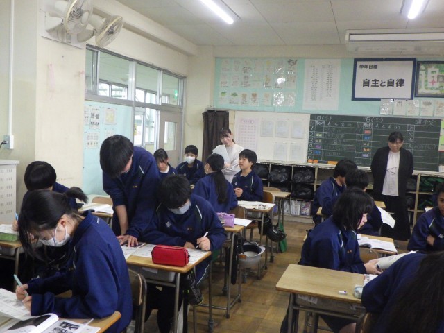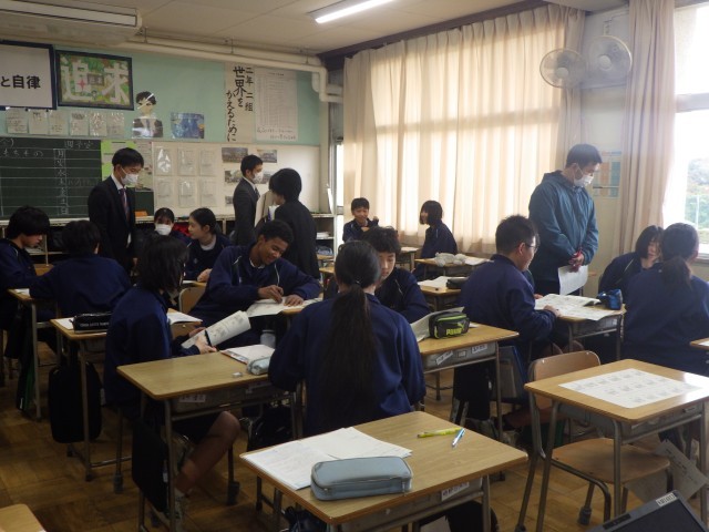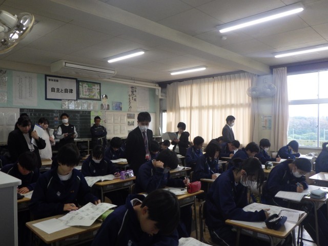授業力アップに向けて 公開日 2025/11/06 更新日 2025/11/06 お知らせ 2年生道徳の授業風景です。本日も講師を招いて授業研究を行いました。多くの先生方が参観していましたが、生徒は落ち着いて授業に参加し、道徳の話を自分事として考え、自分の意見と他者の意見を比べながら考えていました。授業後には検討会を開きました。今後の授業力アップにつなげていきます。 +4 いいね(0)
