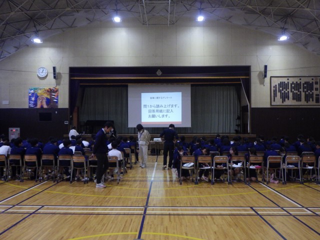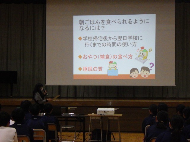 早ね早起き朝ごはん食育講演会 公開日 2025/11/07 更新日 2025/11/07 お知らせ 本日は1年生を対象に、早ね早起き朝ごはん食育講演会が実施されました。鎌ケ谷市健康増進課の方を講師にお招きし、理想的な生活リズムや朝ごはんの役割、噛むことの大切さなどについてご説明をいただきました。これまでの生活習慣を見直す良い機会となりました。 +5 いいね(0)