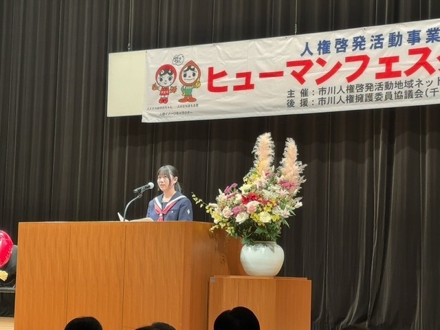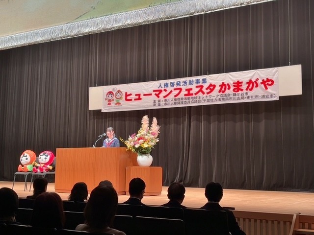 11月29日にきらりホールで「ハートフルヒューマンフェスタかまがや2025」が開催されました。その中で、人権に関する作文を書いたたくさんの作品から優秀作品に選ばれた5人の朗読が行われました。本校からも3年生1名が選ばれ、多くの観衆を前に立派に発表しました。様々な困難に寄り添うことのできる社会の実現を目指した内容であり、大変感動するものでした。