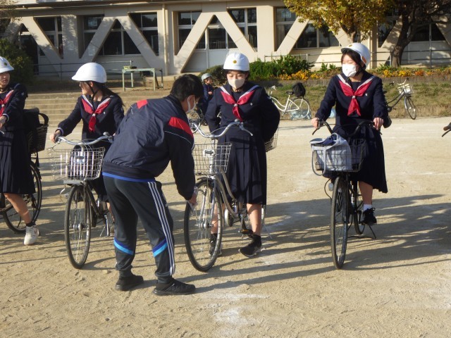 放課後の様子(12月1日) 公開日 2025/12/01 更新日 2025/12/01 お知らせ 本日は、放課後に1、3年生の自転車点検がありました。生活委員や職員が自転車通学者の自転車をこまめに点検していました。四中は自転車通学者が多いので、定期的に点検し、安全に登校できるようにしています。ご家庭でも定期的に自転車の点検をお願いいたします。 +4 いいね(0)