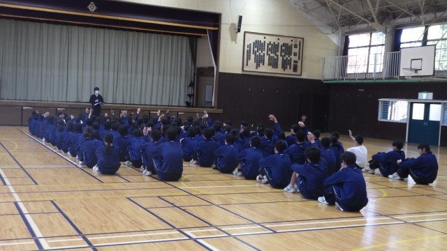 2年生朝の会の様子です。昨日まで2年生は職場体験学習を実施していました。本日は2日ぶりの登校で、お世話になった事業所からいただいたお言葉を学年全体に紹介していました。学校では学べない貴重な経験ができたと思います。これからは事後学習やお礼の手紙を書くので、心を込めてやっていきましょう。
