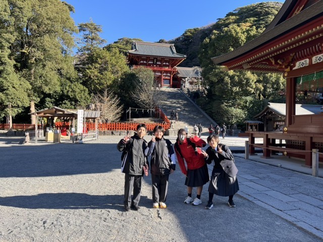 鶴岡八幡宮で班別行動をしている様子です。みんな楽しそうです。