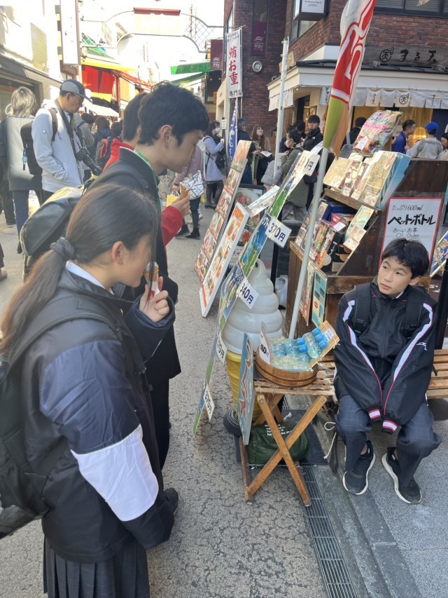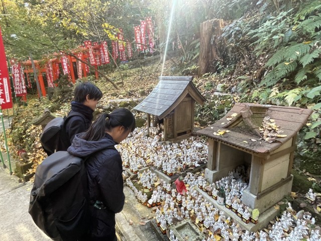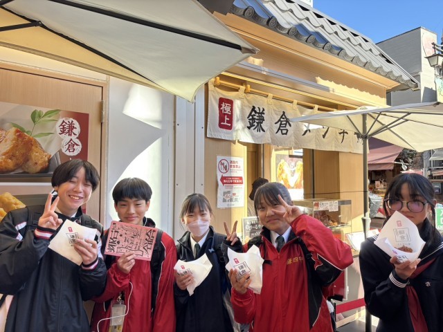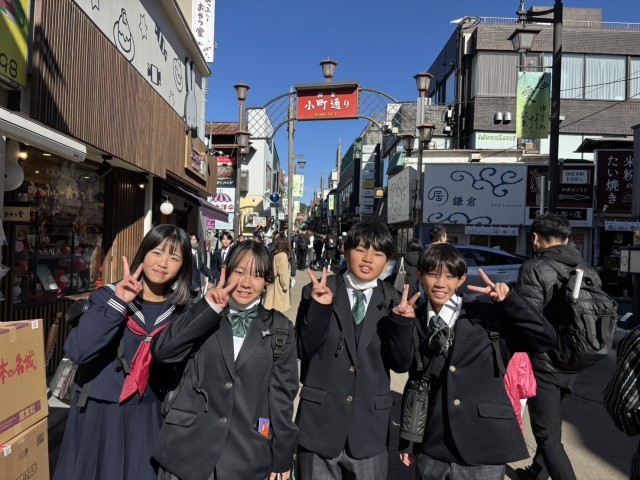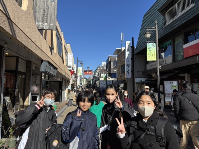 小町通りや佐助稲荷神社を班別行動している様子です。みんな笑顔で楽しそうです。