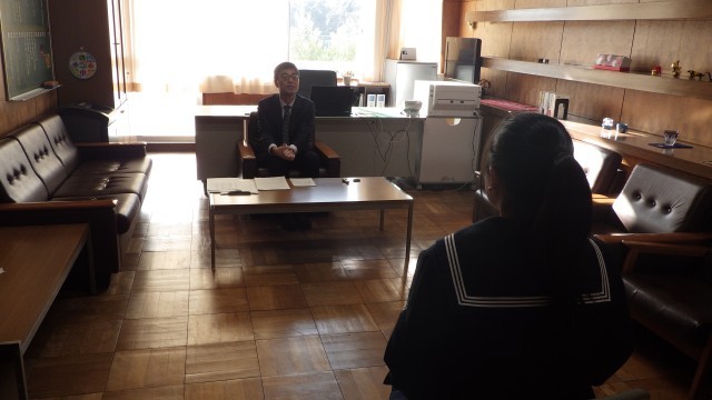 3年生面接練習の様子(12月9日) 公開日 2025/12/09 更新日 2025/12/09 お知らせ 本日も3年生は校長面接を実施しています。緊張する中ですが、志望動機や進学してから頑張りたいことなどを一生懸命伝えていました。うまく思いを伝えることができないことがあっても、振り返りや練習を重ねることで自分の言葉で伝える力がついてくるはずです。頑張っていきましょう。 +2 いいね(0)