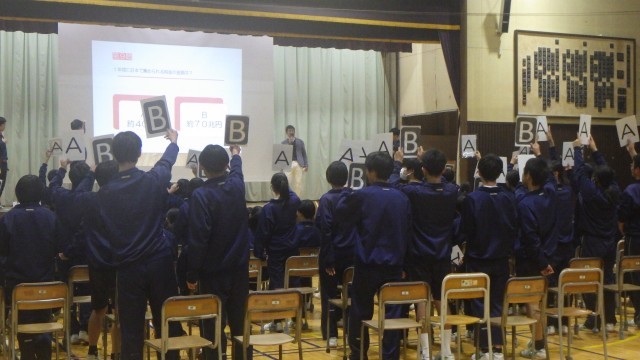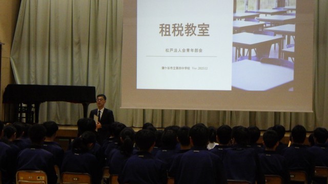 租税教育 公開日 2025/12/15 更新日 2025/12/15 お知らせ 本日は松戸法人会青年部会が主催の中学生向け租税教育がありました。2年生が参加し、税について楽しみながら学ぶことができました。動画やクイズ、税についての漫才などがあり、貴重な学びの機会となりました。関係者の皆様、本当にありがとうございました。 +7 いいね(0)