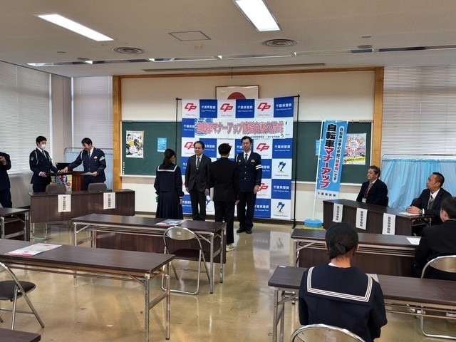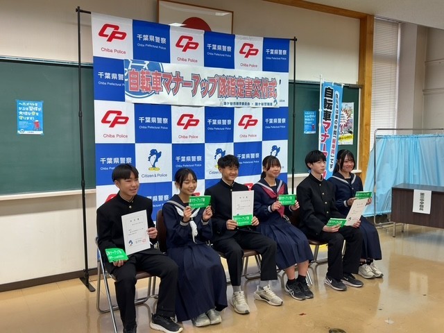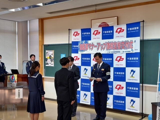 自転車マナーアップ隊指定書交付式 公開日 2025/12/18 更新日 2025/12/18 お知らせ 鎌ケ谷警察署において、鎌ケ谷市自転車マナーアップ隊指定書交付式が行われました。市内中学校で自転車通学を行っている学校から代表者が集まり、警察署長から指定書、教育委員会教育長から腕章が贈呈されました。自転車通学生徒の交通事故防止についての意識を向上させるとともに、自転車に乗る際のマナー向上のために、生徒みんなでできることをやっていってほしいと思います。 +1 いいね(0)