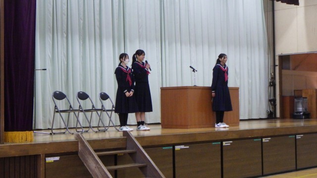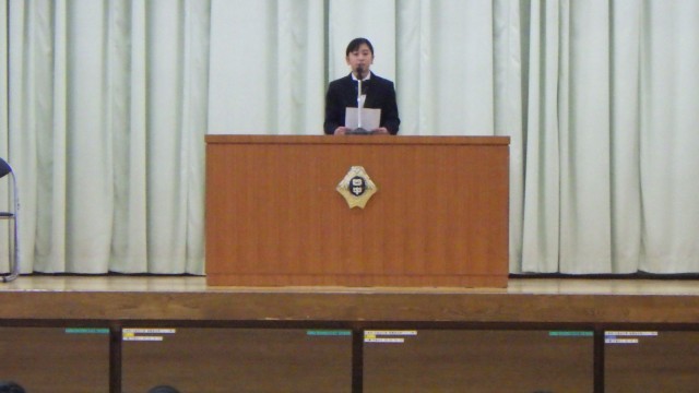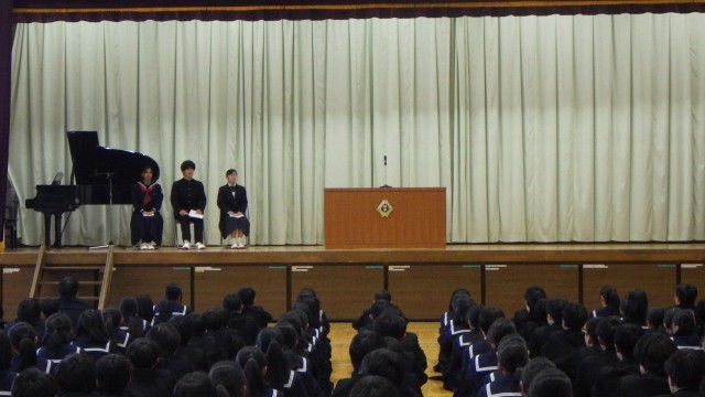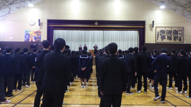 3学期始業式 公開日 2026/01/06 更新日 2026/01/06 お知らせ 本日より3学期がスタートしました。始業式の様子です。各学年の代表生徒が3学期の抱負を発表しました。進級に向けて改めて学習に励むこと、部活動や行事にも全力で取り組むこと、そして3年生は卒業へ向けて様々な壁を越えるための最後の努力をしていくことなど、これからスタートする3学期に向けて意欲が伝わる発表でした。校長先生からは、「一生懸命な姿は美しい」、「最後まで諦めなければ奇跡が起こる」という話がありました。日々、自分自身ができることを地道に積み重ね、充実した3学期にしていきましょう。 +5 いいね(0)